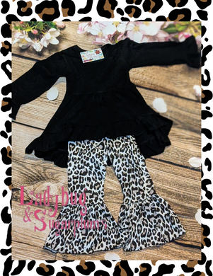 Winter White Leopard Print Ruffle Outift