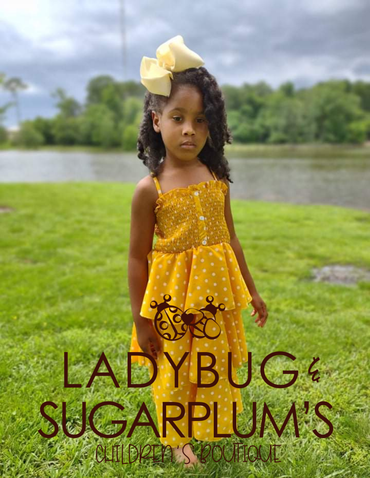 The dress has a fun polka dot print and ruffled layer skirt Available in sizes 3T, 4T, 5Y, 6Y, 7Y, 8Y Perfect for year-round play, birthday parties, and sunny days Includes dress